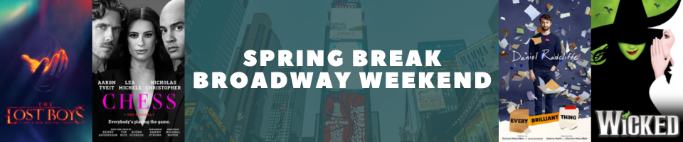 Please consider this your personal invitation: Gather those teens, the college-aged kids, the grandkids, the nieces and nephews, your spouse, best friend or your sister – whomever is on a “Spring Break” or simply so ready to visit New York City and Broadway!